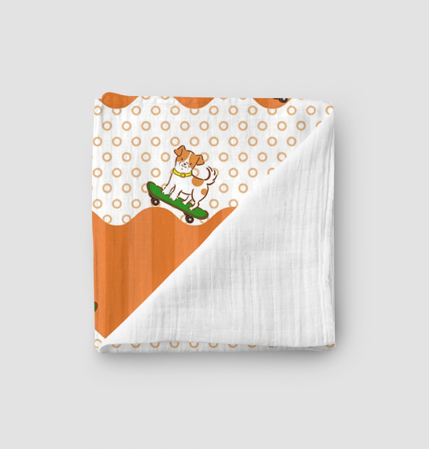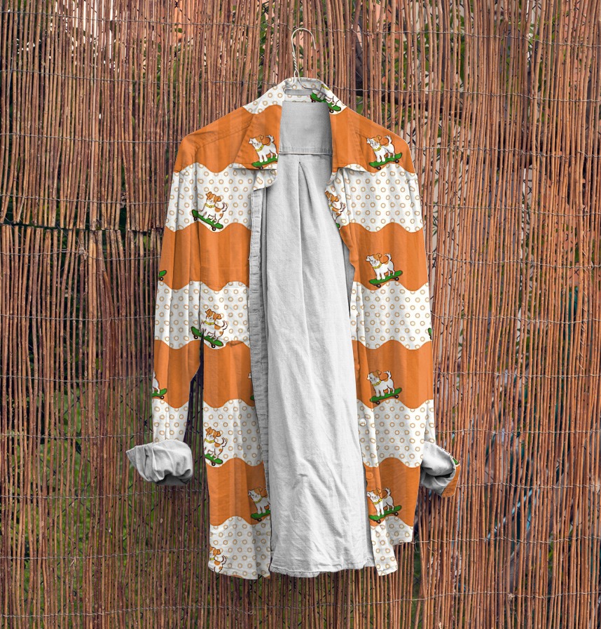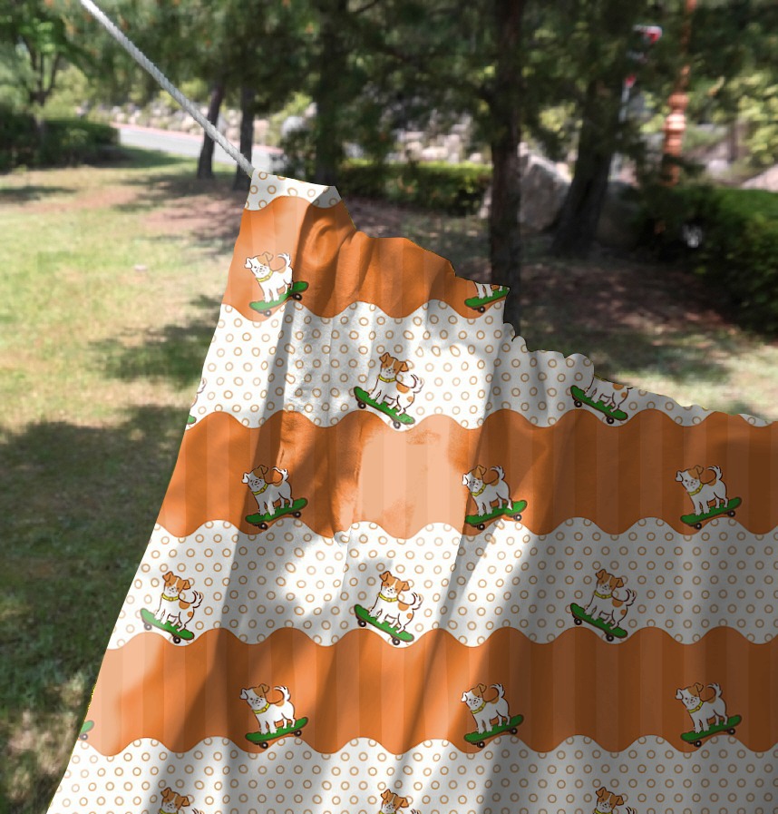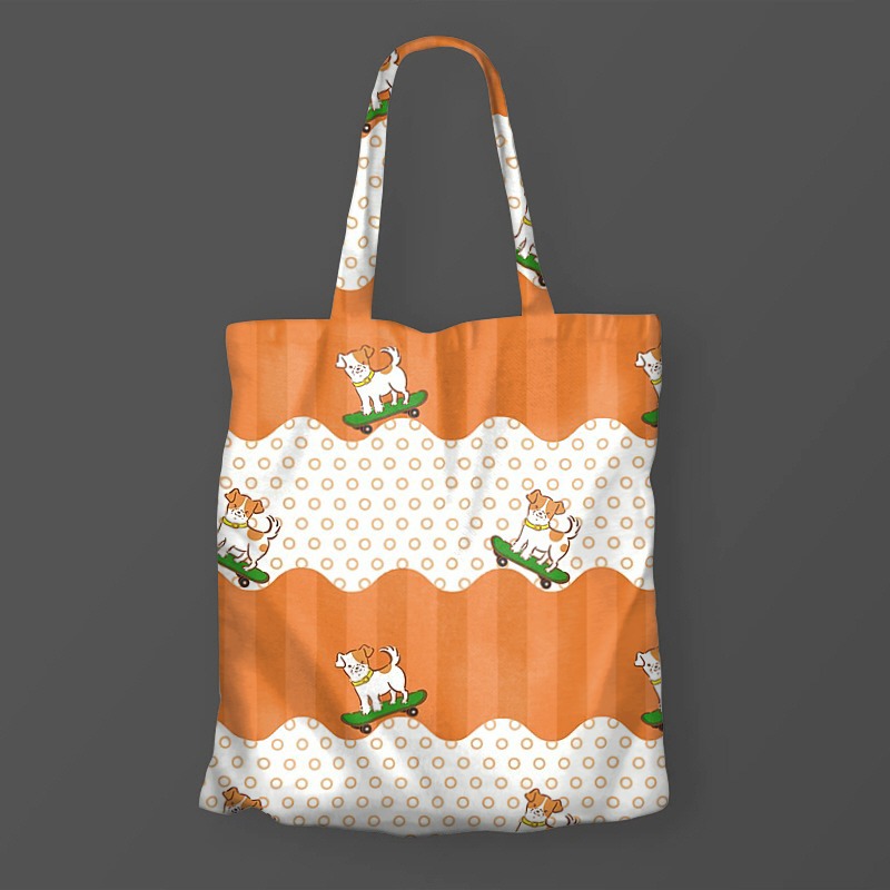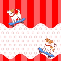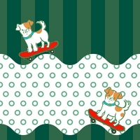| Design infomation | Pattern of Jack Russell Terrier riding a skateboard The background is based on waves with stripes and ring dots. |