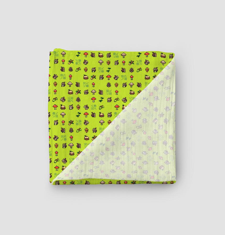 Design infomation | Pixel art with mushroom and forest motifs. |