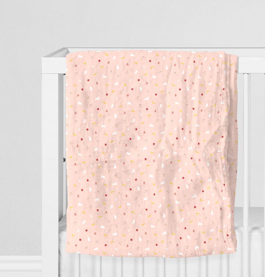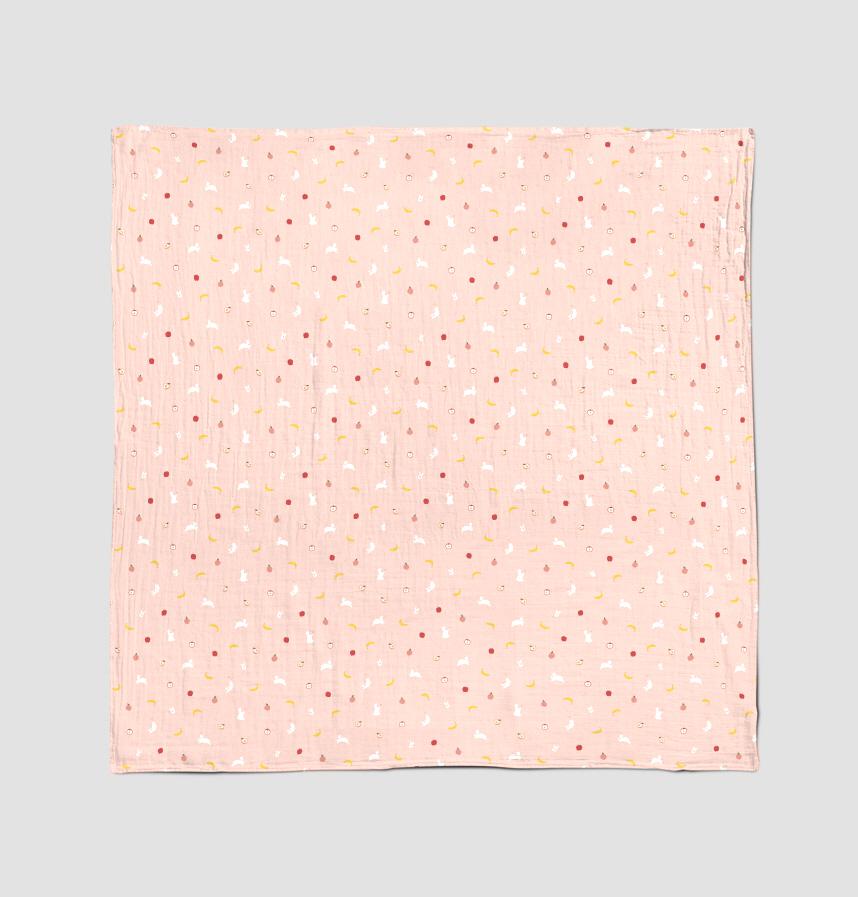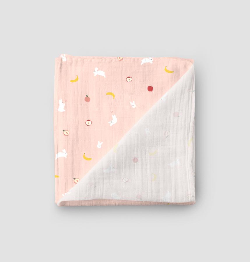 Design infomation It is designed with a white rabbit, apple, peach, banana, and other fruits in the motif