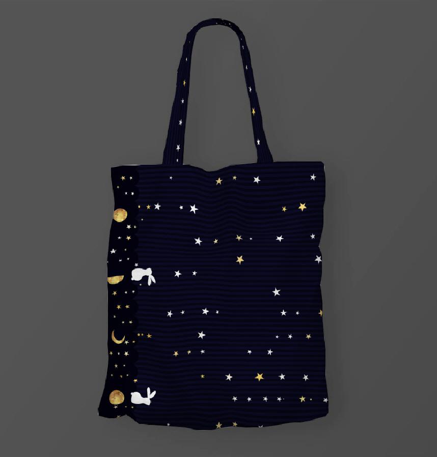 Design name [30767] Moon Rabbit on a Starry Night (Navy Blue)