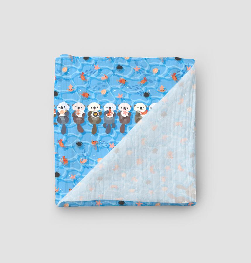 Design infomation | A sea otter is eating on the sea where seafood floats. |