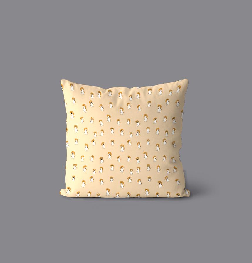 Design infomation | The real beagle dog Coco's furry yellow, black, and white are expressed in motif colors to express a cute expression that is tilted repeatedly |