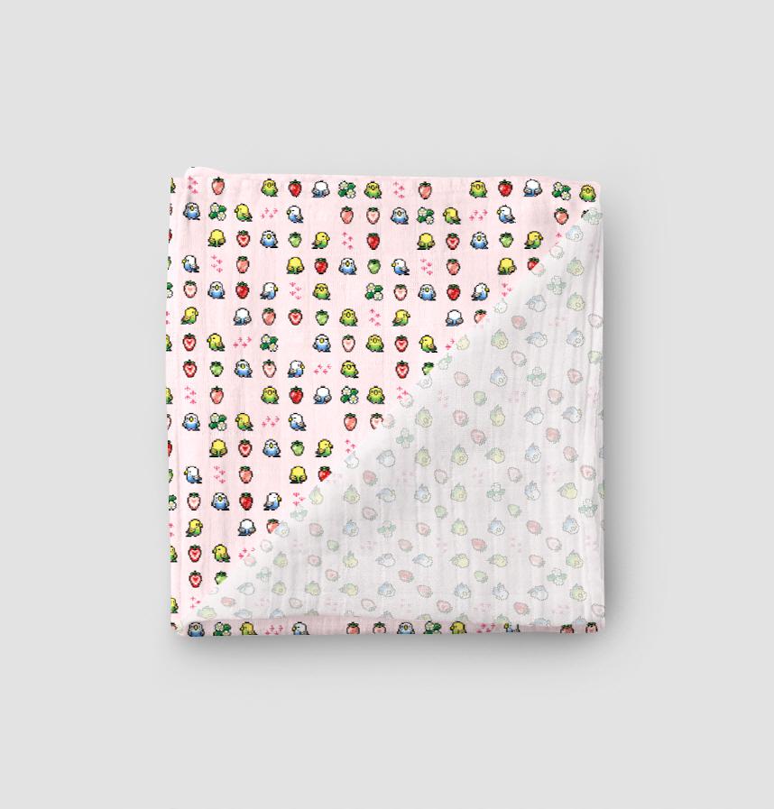 Design infomation | This is a pixel art of a strawberry and a little bird. |