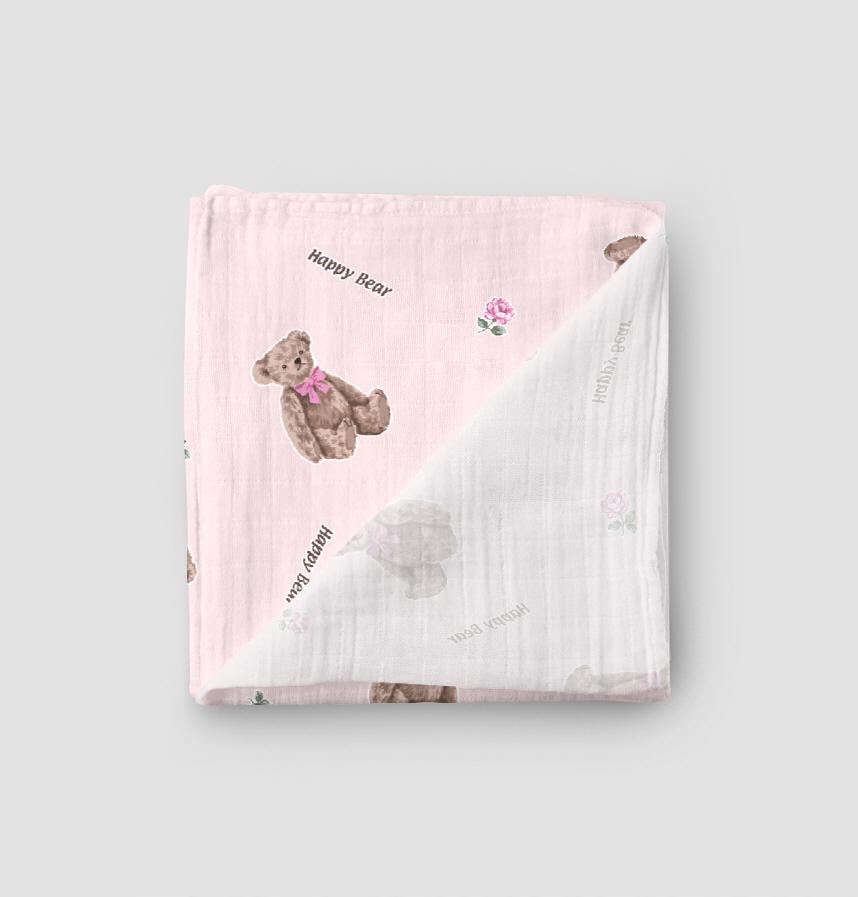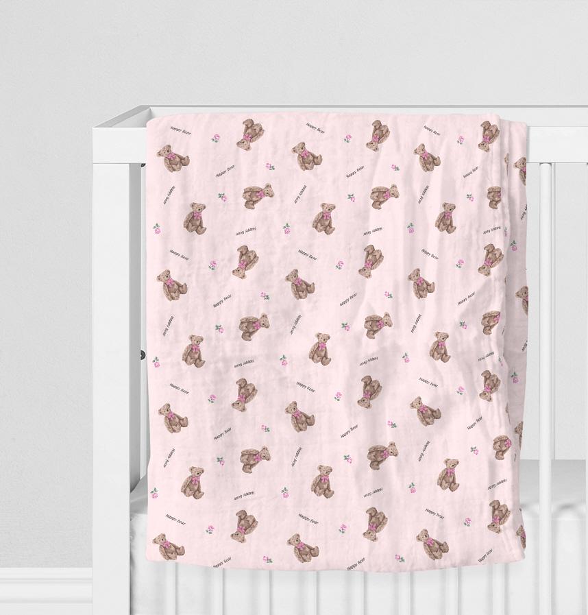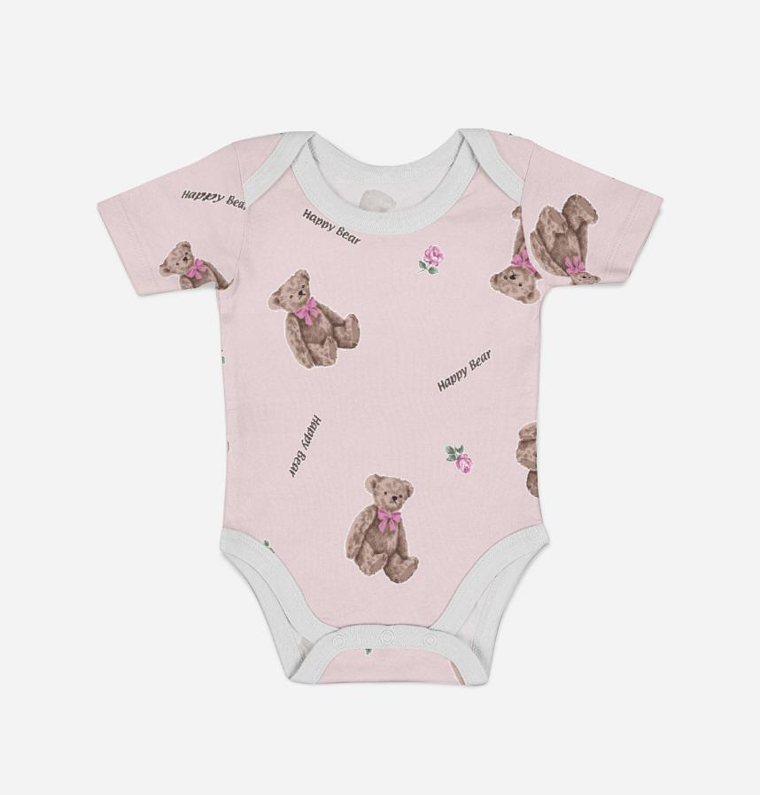 A cute teddy bear and rose floral pattern. Designed with a calm image in retro colors.
