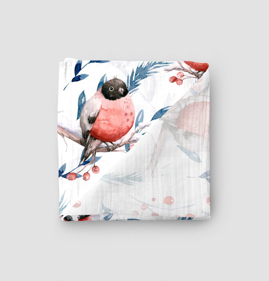 | Design infomation | Watercolor patterns of winter birds and Christmas red berries Leaves, branches, birds, fruit: primary design elements Red, black, turquoise: primary color |