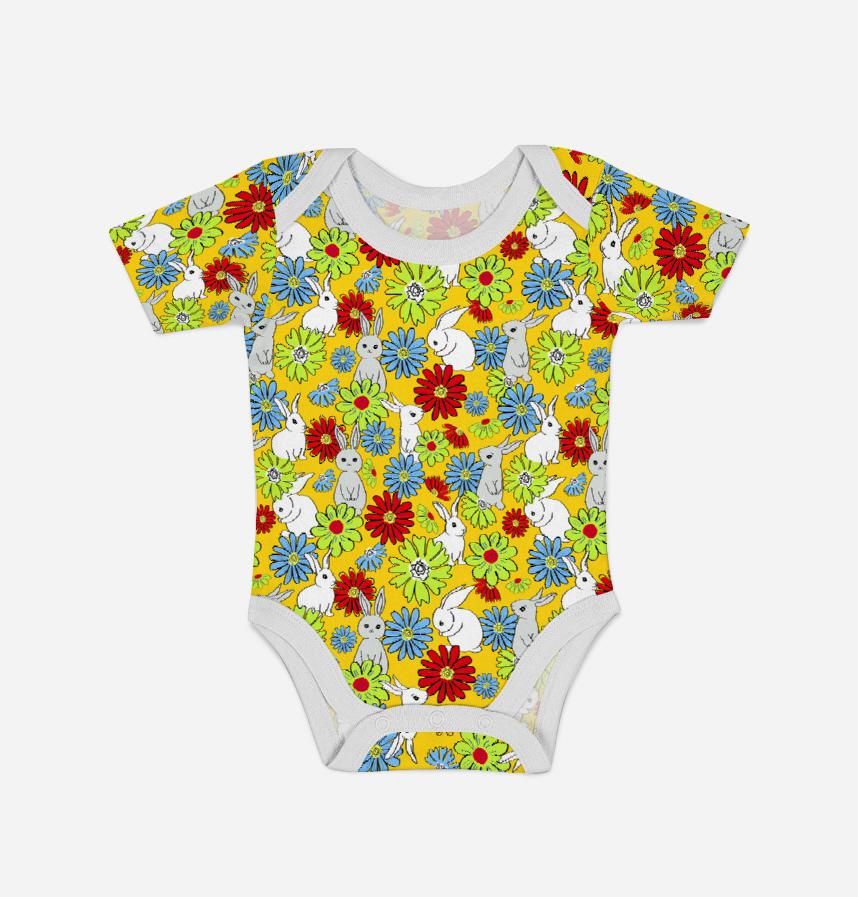 Pattern of a rabbit playing in a flower field