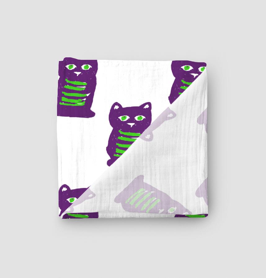 It is the pattern of purple cats. |