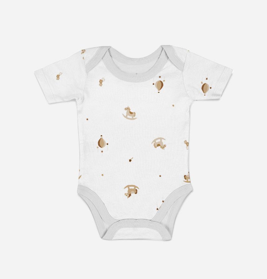 Design infomation | the whole pattern. A wooden horse and balloon drawn in a gentle beige tone.Recommended for baby and infant products. |