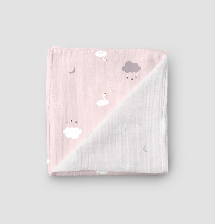 Design infomation | the whole pattern. textile depicting swans swimming gracefully on starry nights |