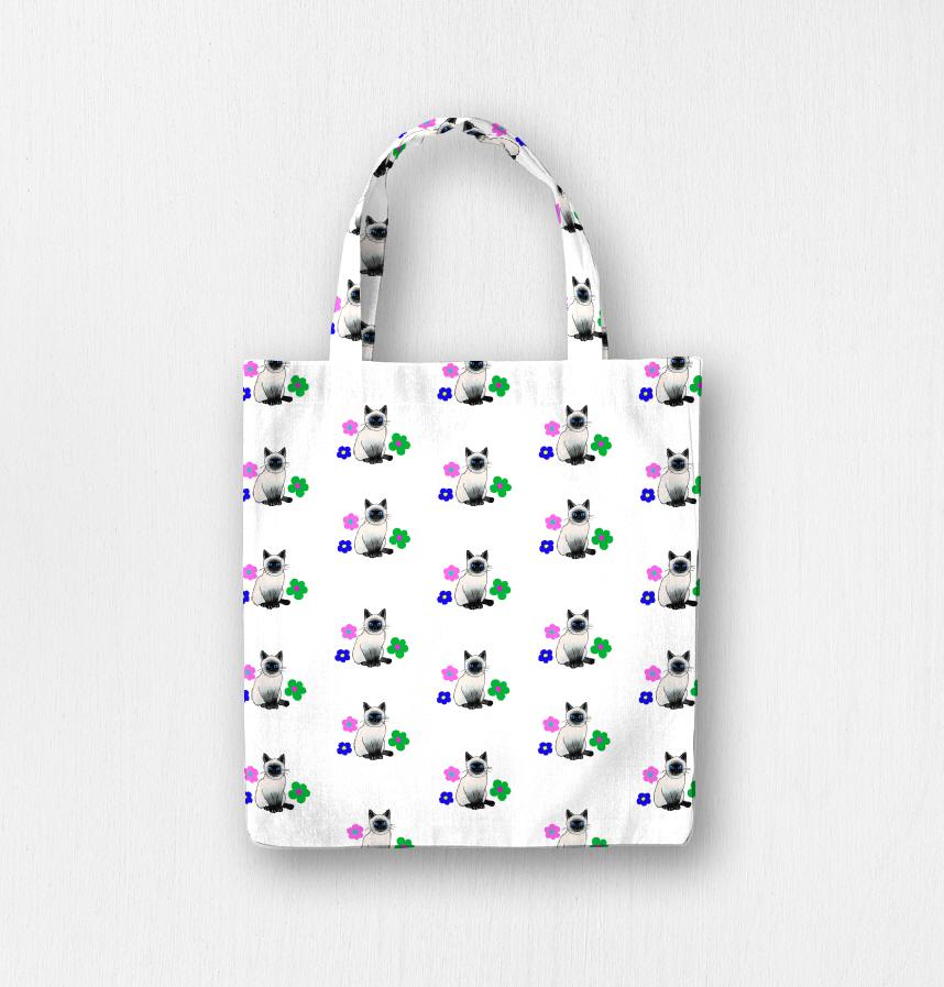 Use eco-bags, T-shirts, phone cases, etc. with the harmony of cat and pretty flowers