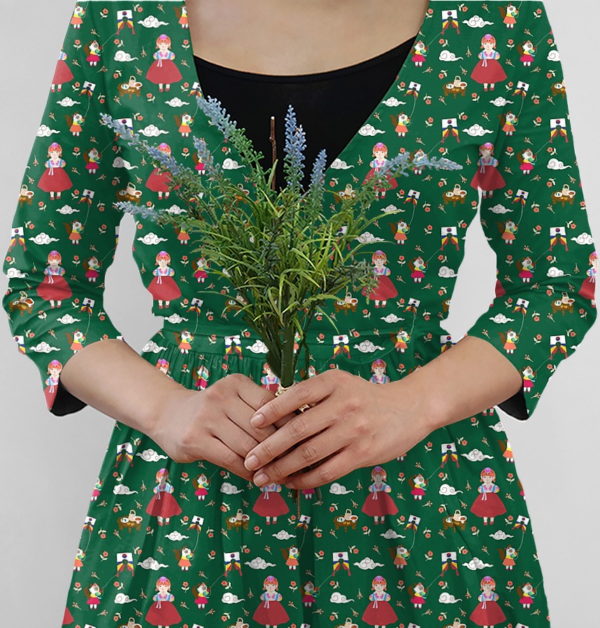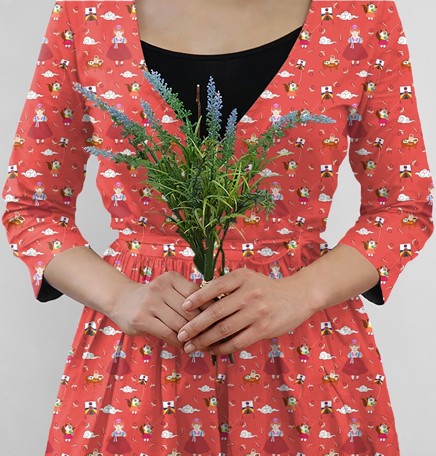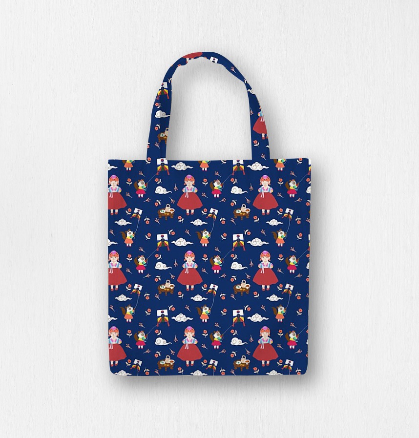 | Design infomation | Illustrations based on Korean holidays are made into patterns. A Korean holiday scene in which a woman in hanbok and two cats fly kites wishing the moon |