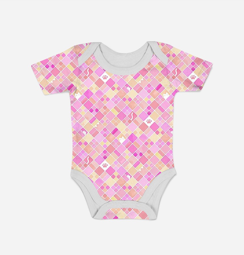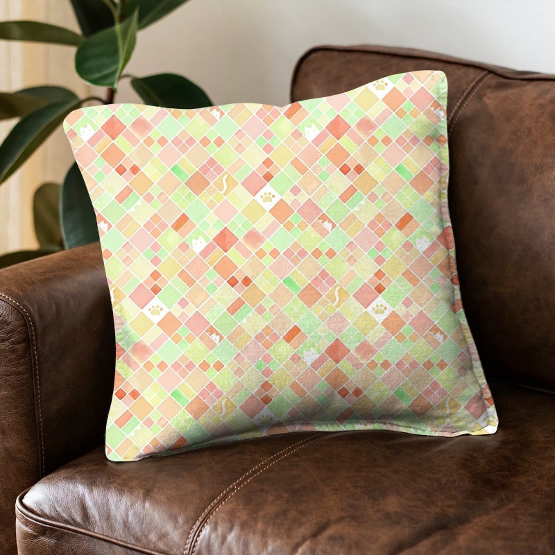 | Design infomation | A light and cute stained glass design painted in watercolors, where cats can be seen and hidden. Recommended for making children's clothes, entrance goods such as lesson bags, baby goods and accessories. The diagonal line of one square is about 3.5 cm. It's a little big, so please reduce it according to your preference. |