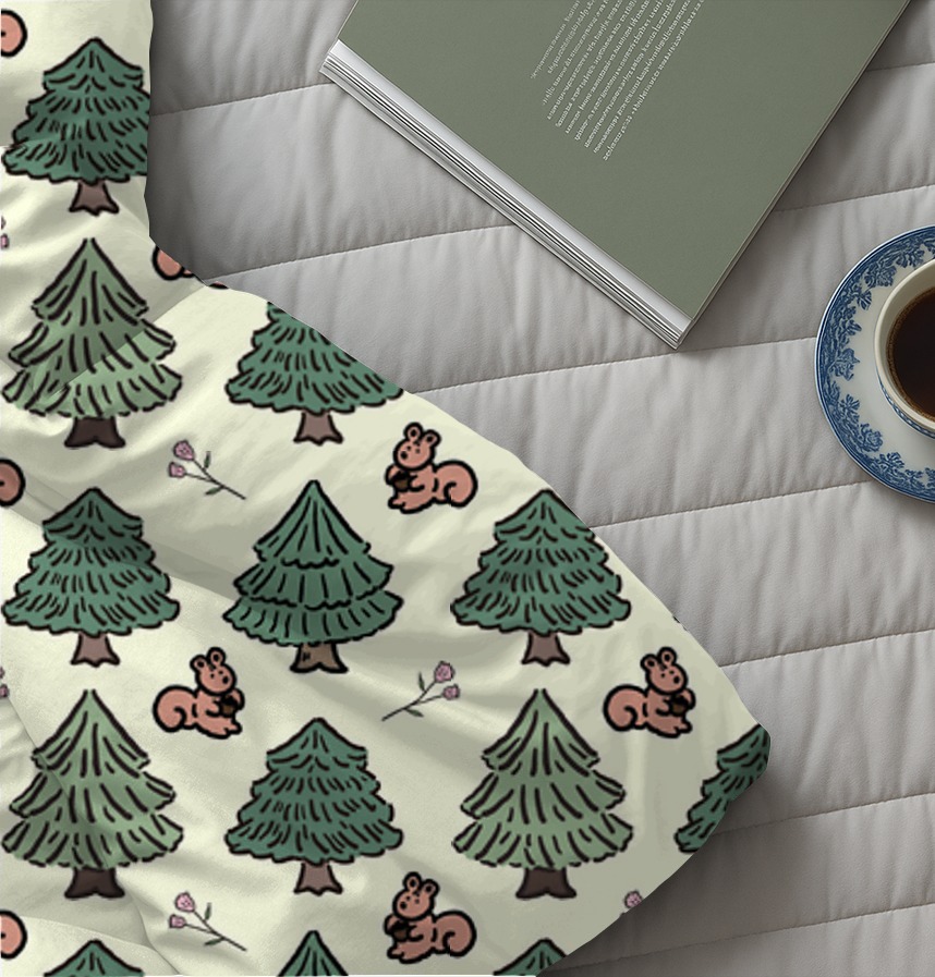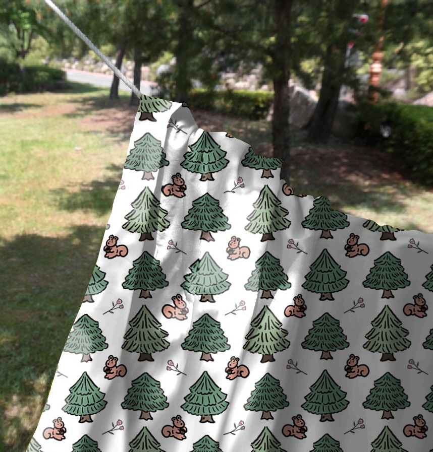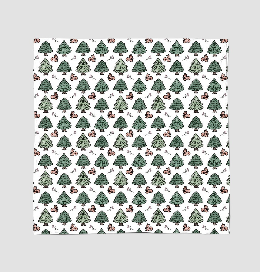 Design infomation It is a compact 7cm x 7cm pattern with squirrels and flowers drawn among the trees in the forest.