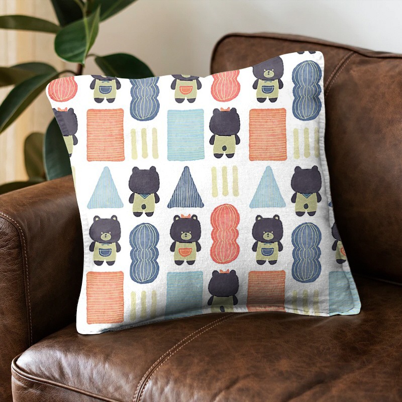 A girl bear wearing a ribbon, and a boy bear with a bandana around his neck.