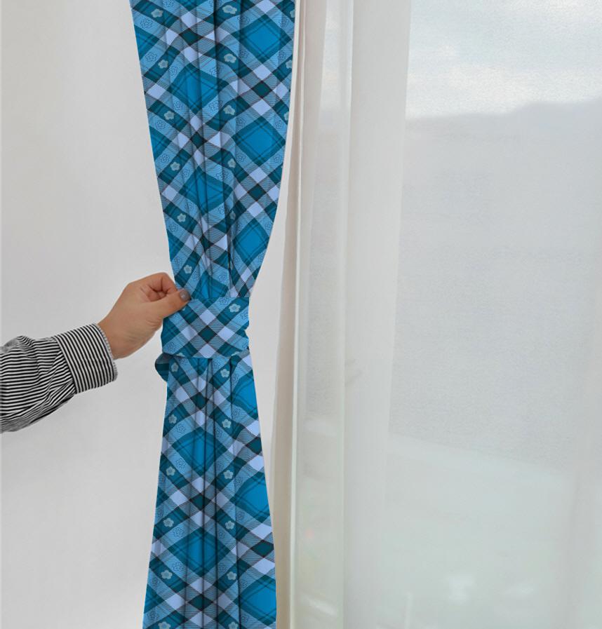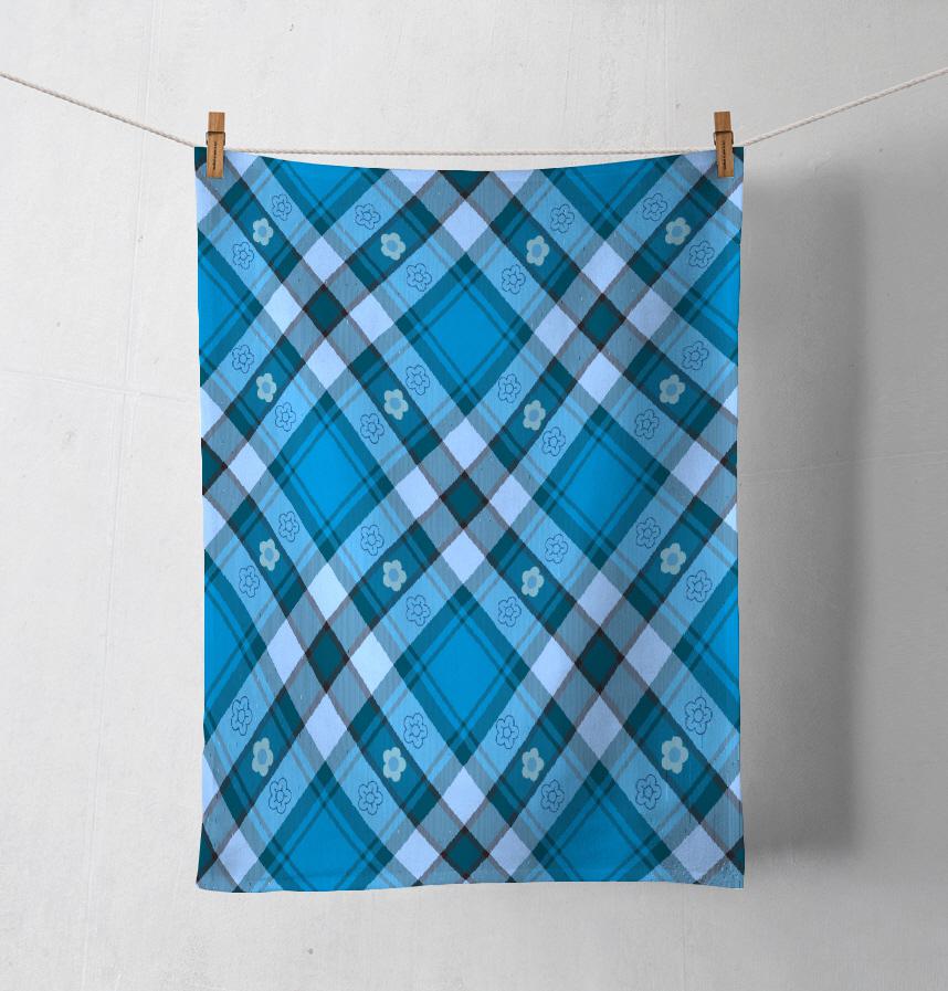 [41297] Small Flowers and Tartan Check Series-Breakingdon Blue