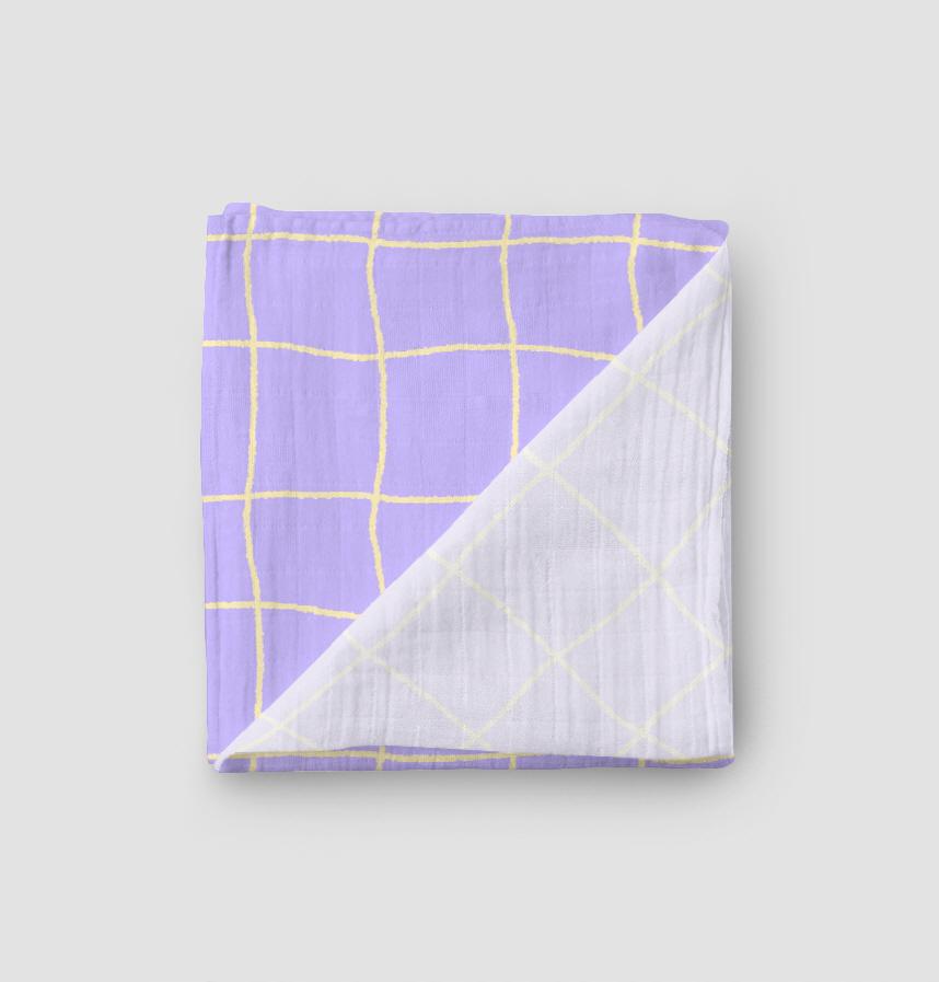 It is a winding checkered pattern with purple and yellow accents.