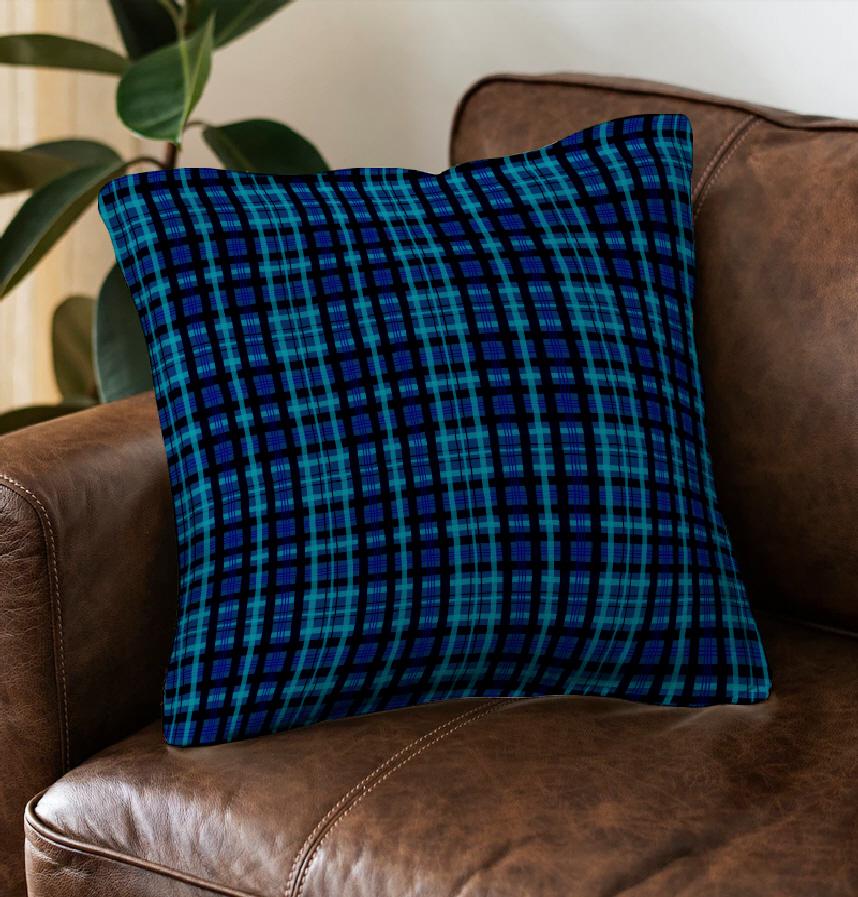 Dark blue background thick black and sky blue, thin black and blue strip check