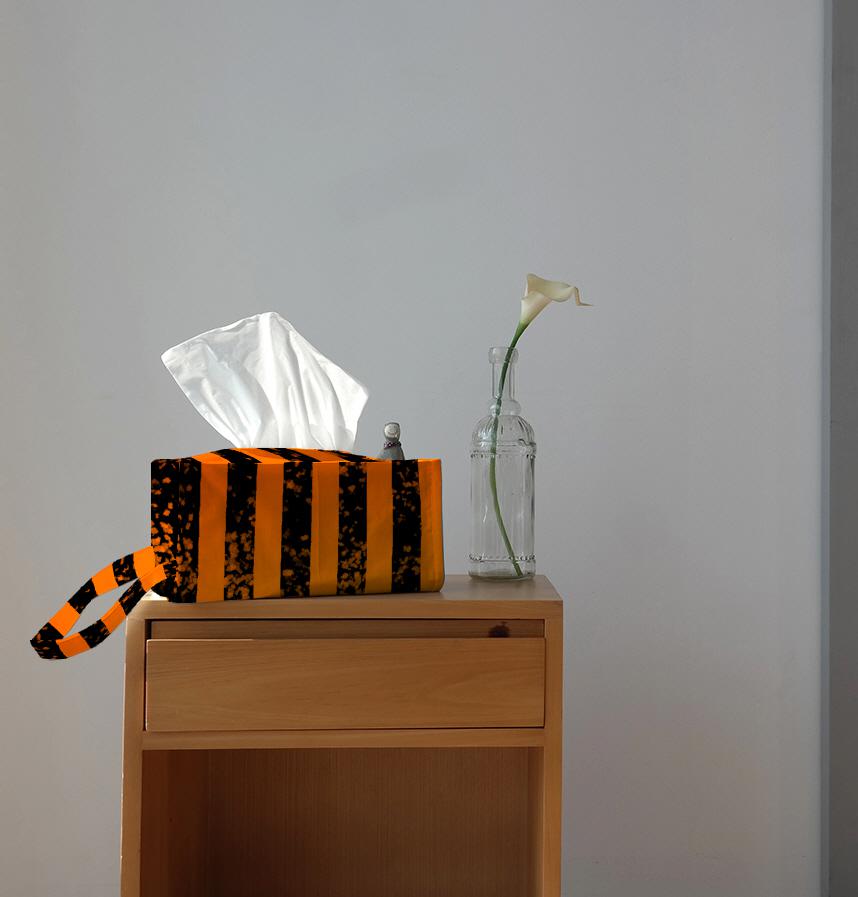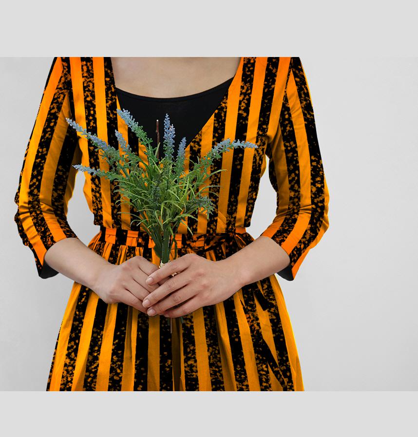 | Design infomation | This striped pattern is easy to use when making costumes and accessories for Halloween. The black stripes sometimes disappear, making it even more interesting. The background is orange and yellow gradation. |