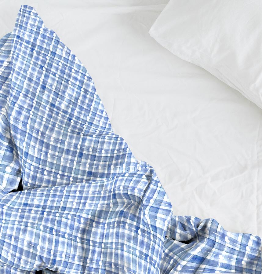 | Design infomation | pastel-toned plaid checkered and heart pattern design Stripe, Heart: Key Design Elements Blue, White: Main Color |