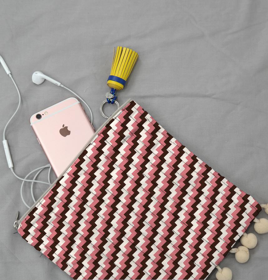 It has a jagged striped pattern inspired by chocolate and strawberries.