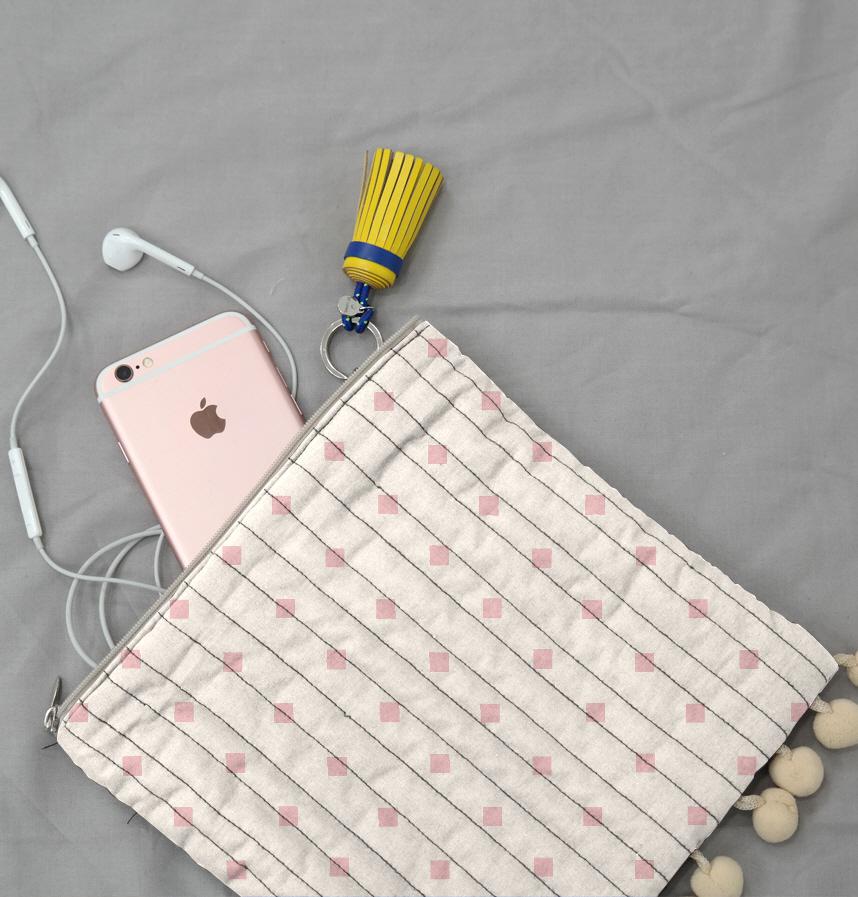 It is a pastel pink diamond pattern design with a modern and warm feel.