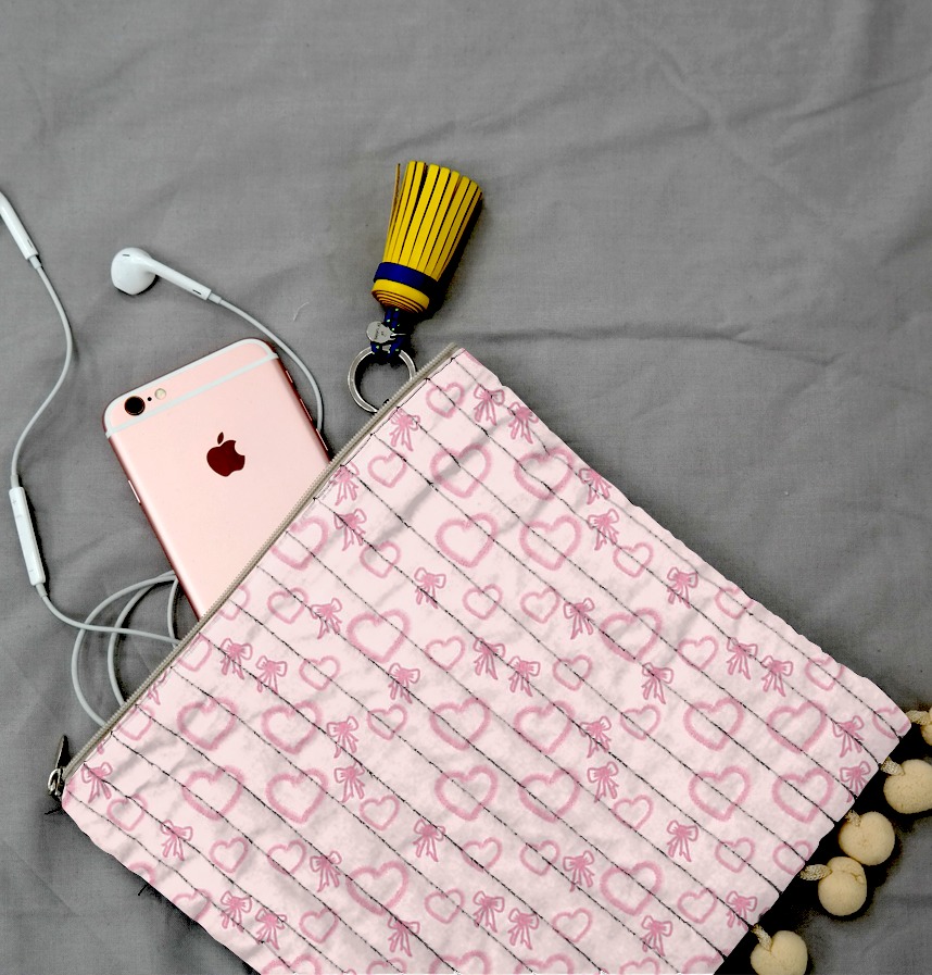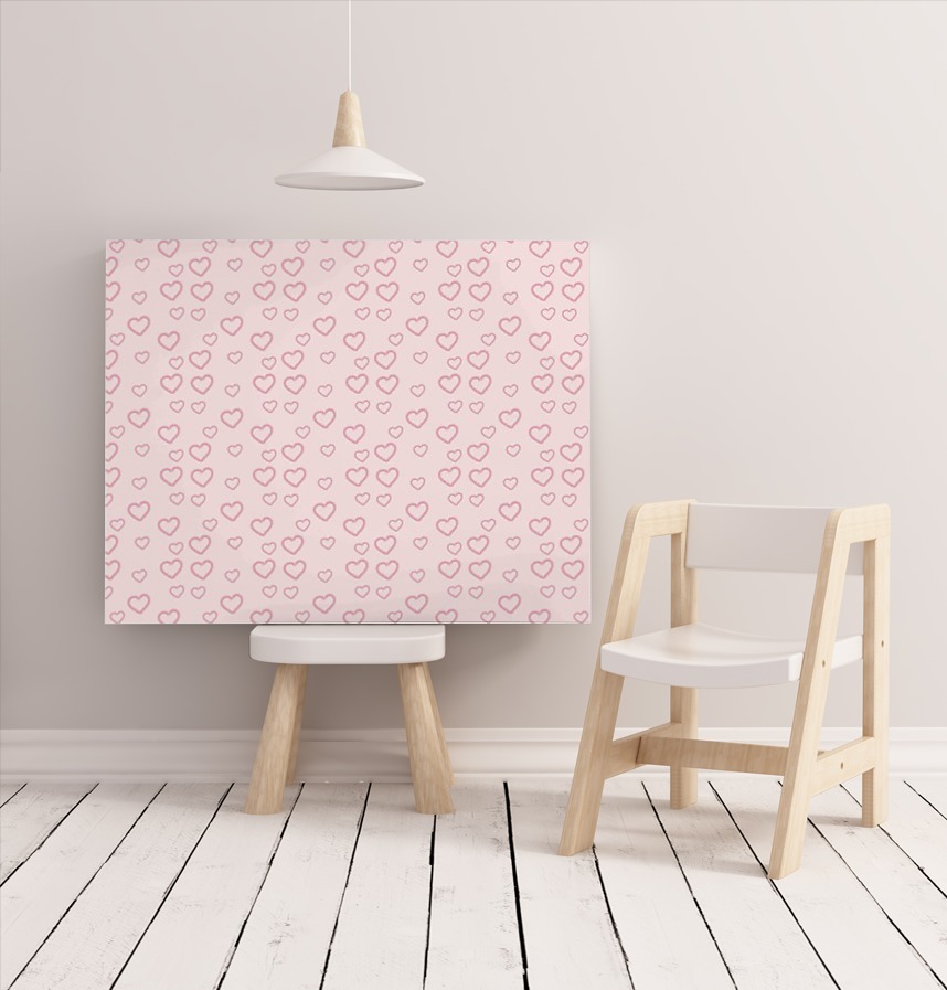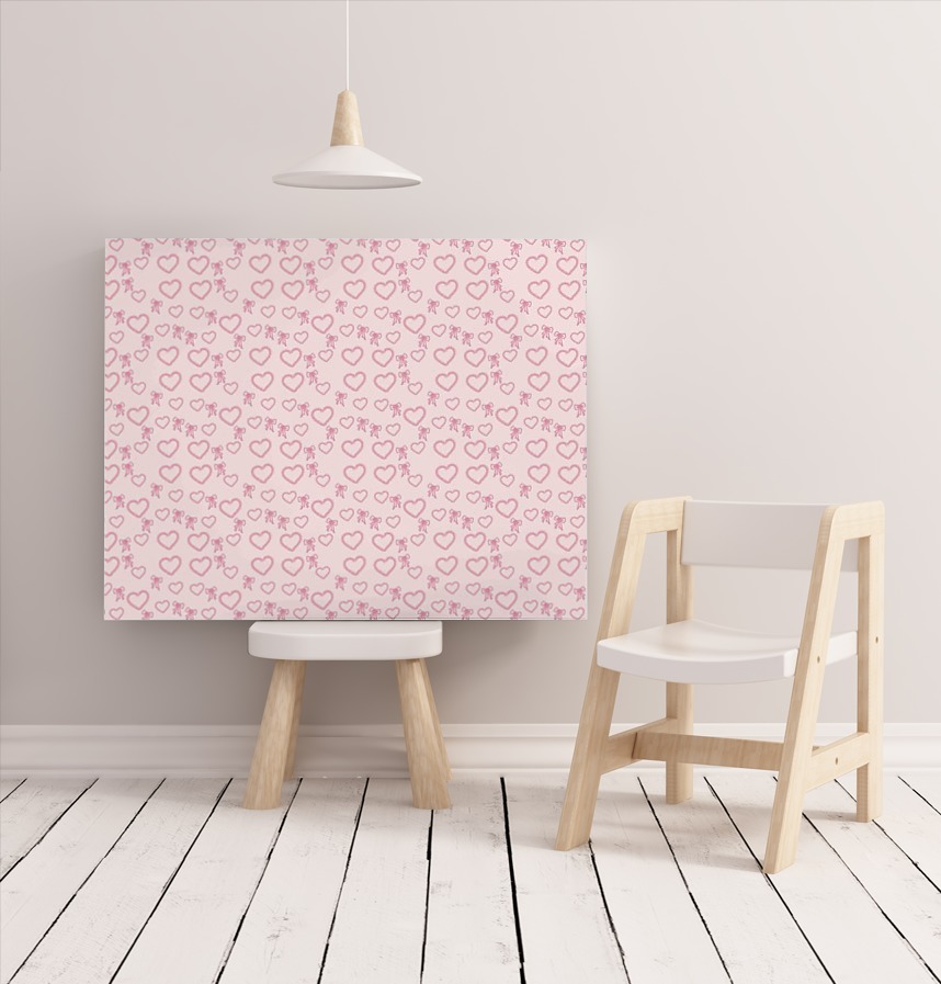 It's a cute expression of pastel-drawn hearts and ribbons