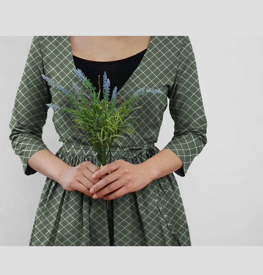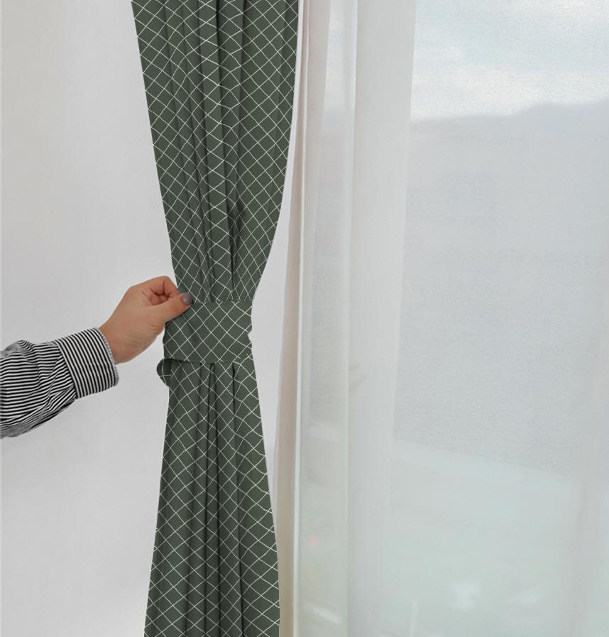 Combining a dark green background with delicate gray oblique patterns, this textile creates a modern and clean atmosphere.