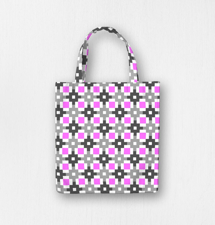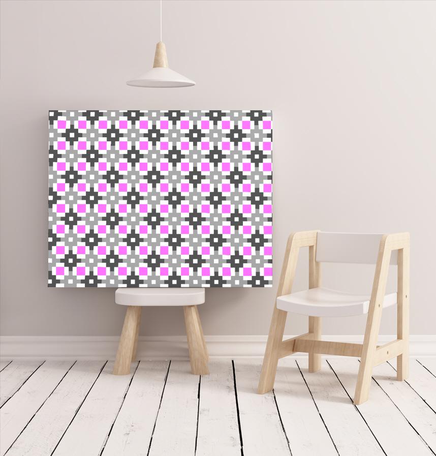 A cute geometric design. A calm gray with pink accents. Suitable for accessories such as cushions and bags, and children's clothing. If you use it as a fabric panel, it will give your room a modern impression.