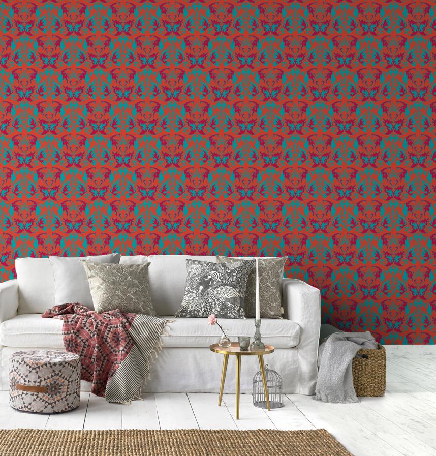 It is a pattern in which illustrations of burning butterflies are alternately connected.