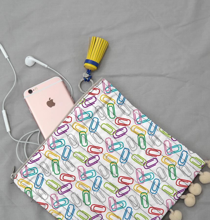 Colorful clips scattered throughout. Perfect for stationery lovers.
