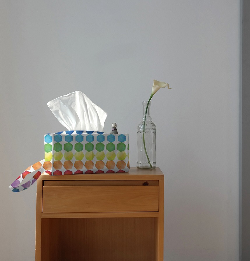 | Design infomation | It is a colorful, watercolor hexagonal pattern.Each hexagonal pattern was painted in a watercolor style. It is finished with a retro look of the Showa era.It is a unique hexagon that is arranged irregularly. |