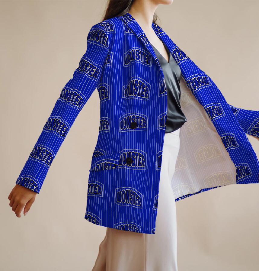 Design infomation blue background white stripes, monster typography