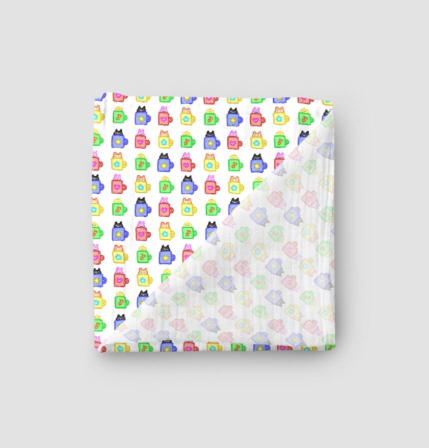 A crayon doodle style design of animals in cups.
