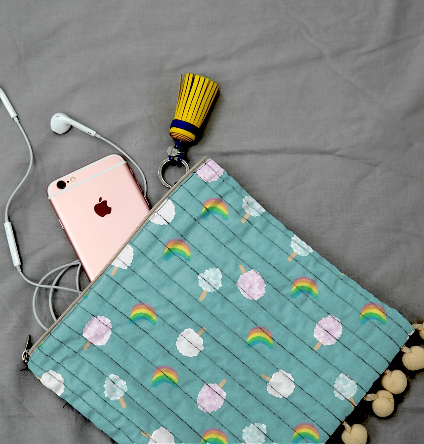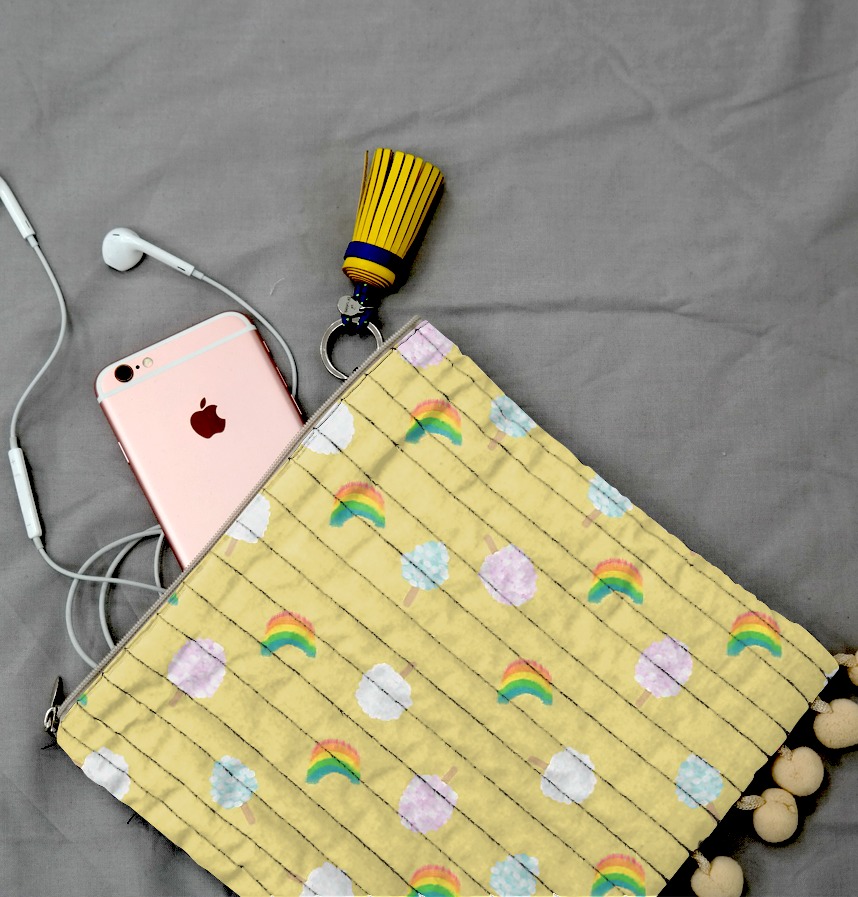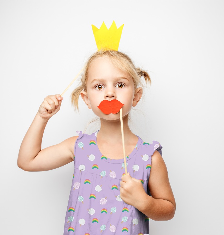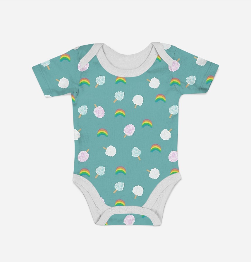 Cotton candy and rainbow in three colors are patterned in pastel tones. The vivid background colors express the lively and innocent atmosphere of the amusement park. |