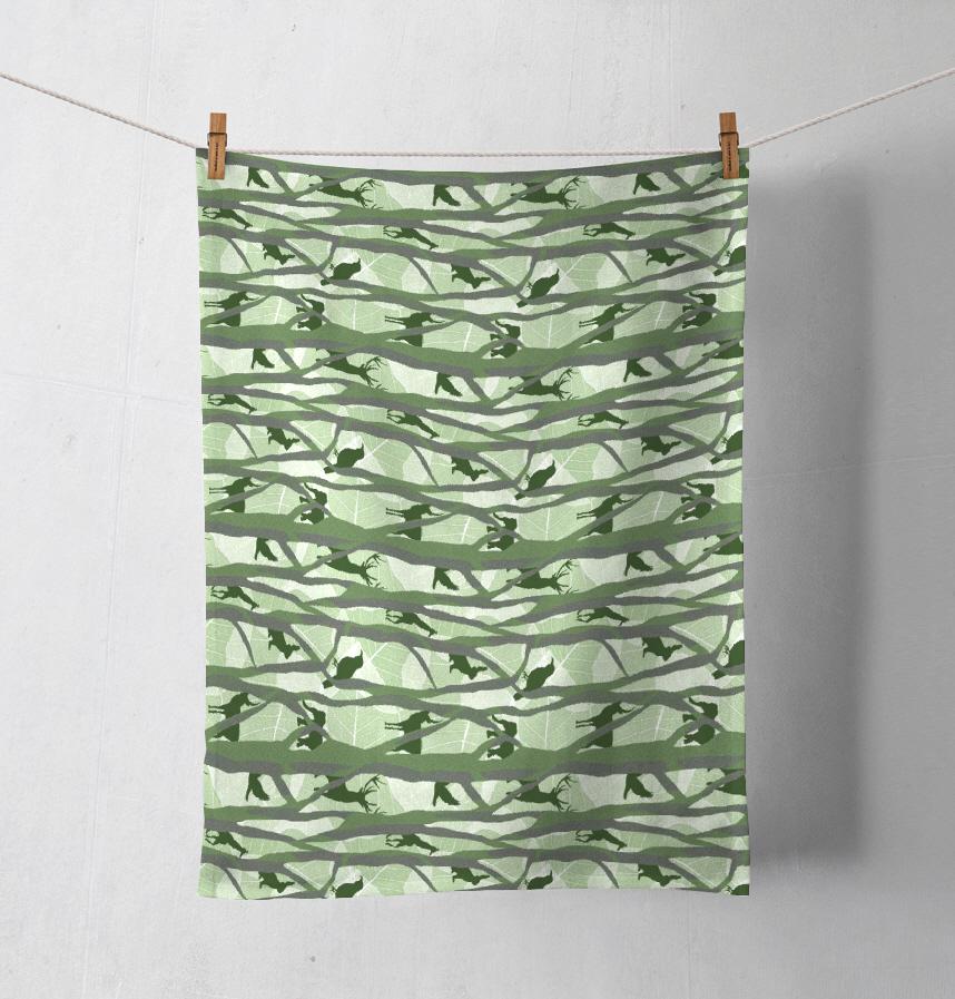 Design infomation Animals and leaves silhouette behind tree silhouette