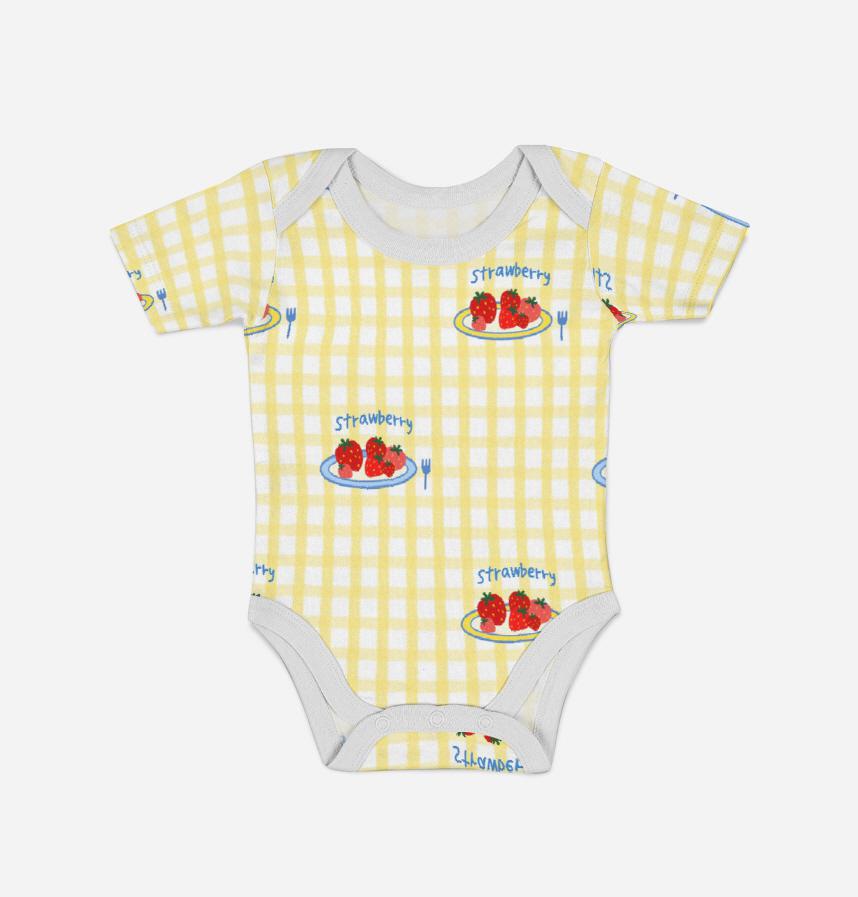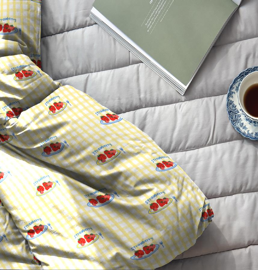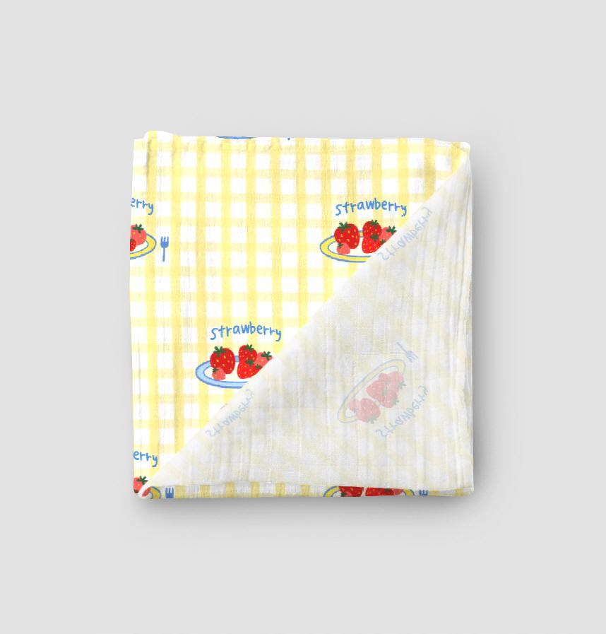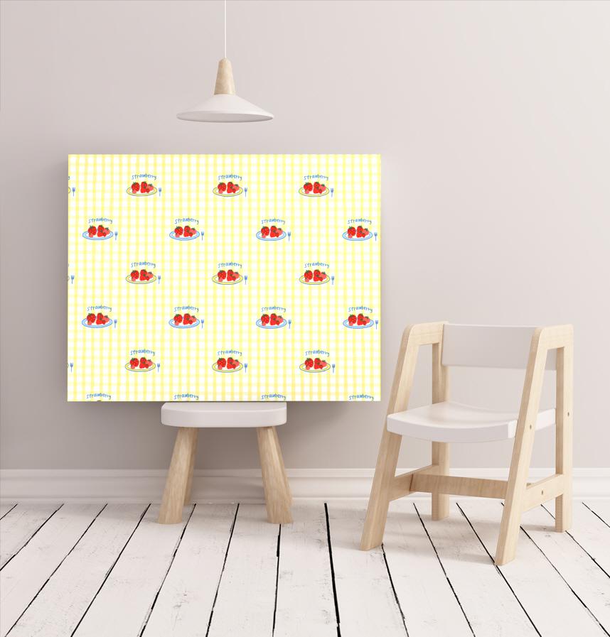 Yellow check and a plate of strawberries