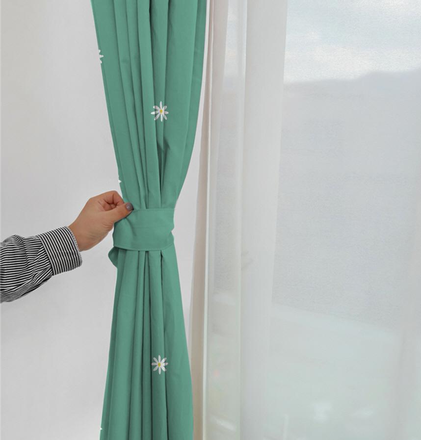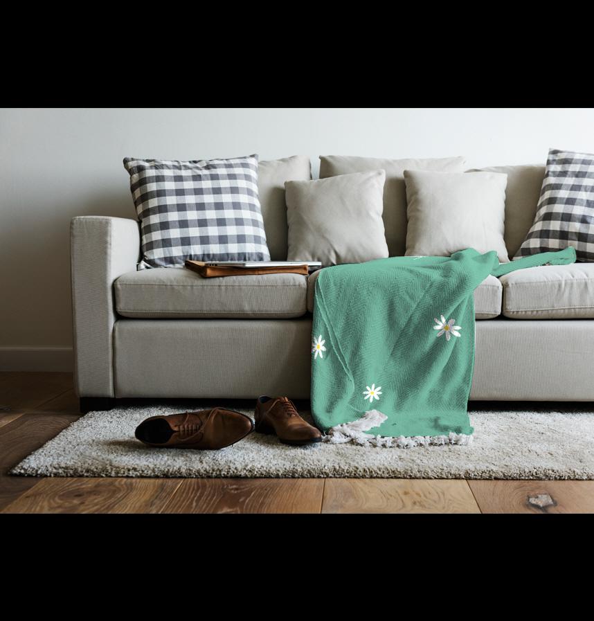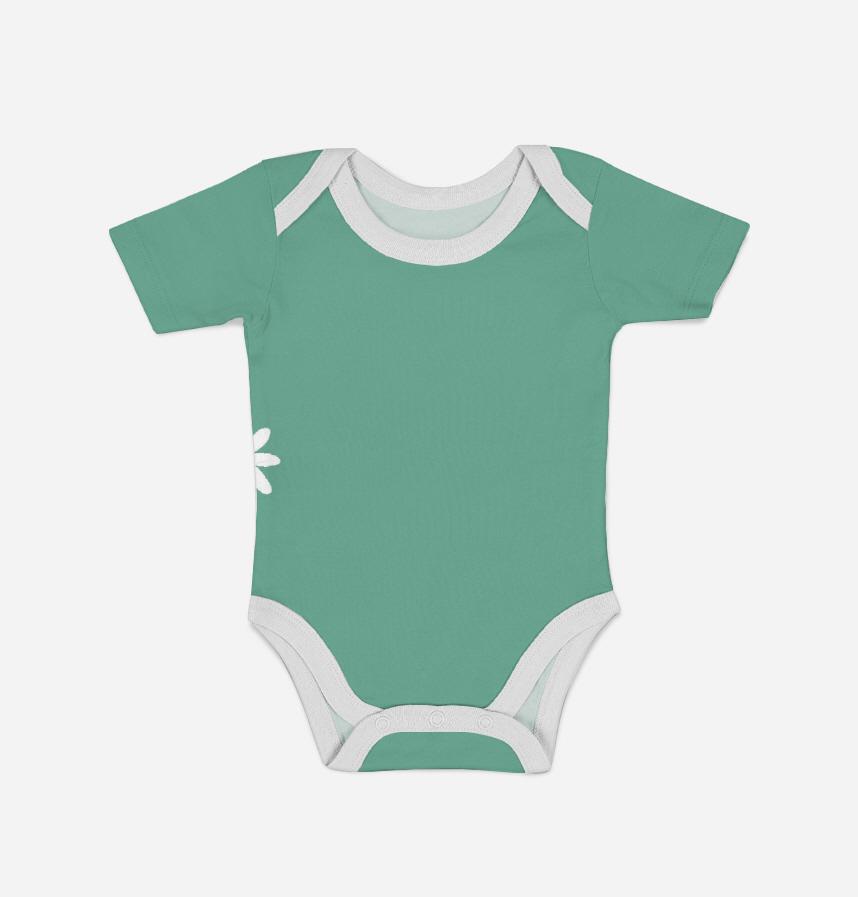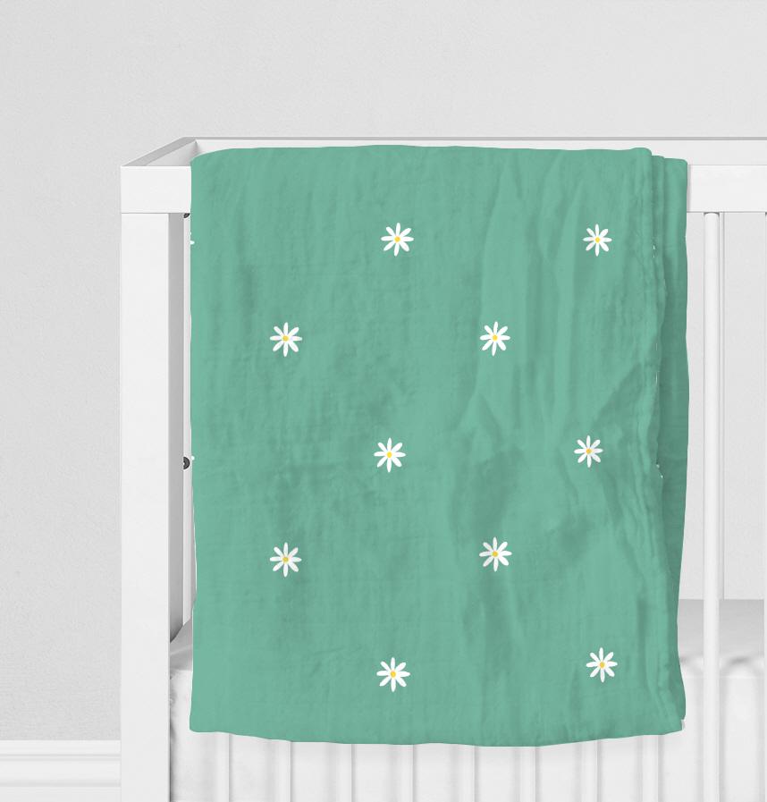 It is a design with white daisy flowers drawn irregularly on a mint-colored background.