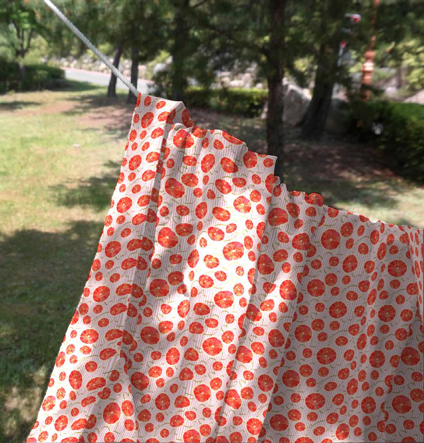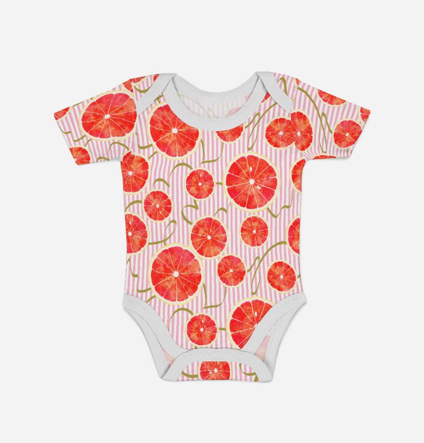 A design featuring sliced pink grapefruit and refreshing stripes.