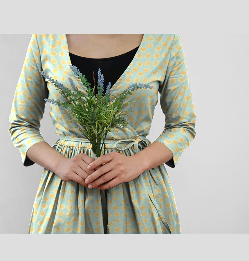 Design infomation | ·motif hand-drawn dots It has a warm crayon-like texture. ·size The size of one dot is approximately 4 to 3 cm. ・Example of work I think you can use it regardless of the size of your work. The design does not make too much of a statement, so it is also recommended for lining. |