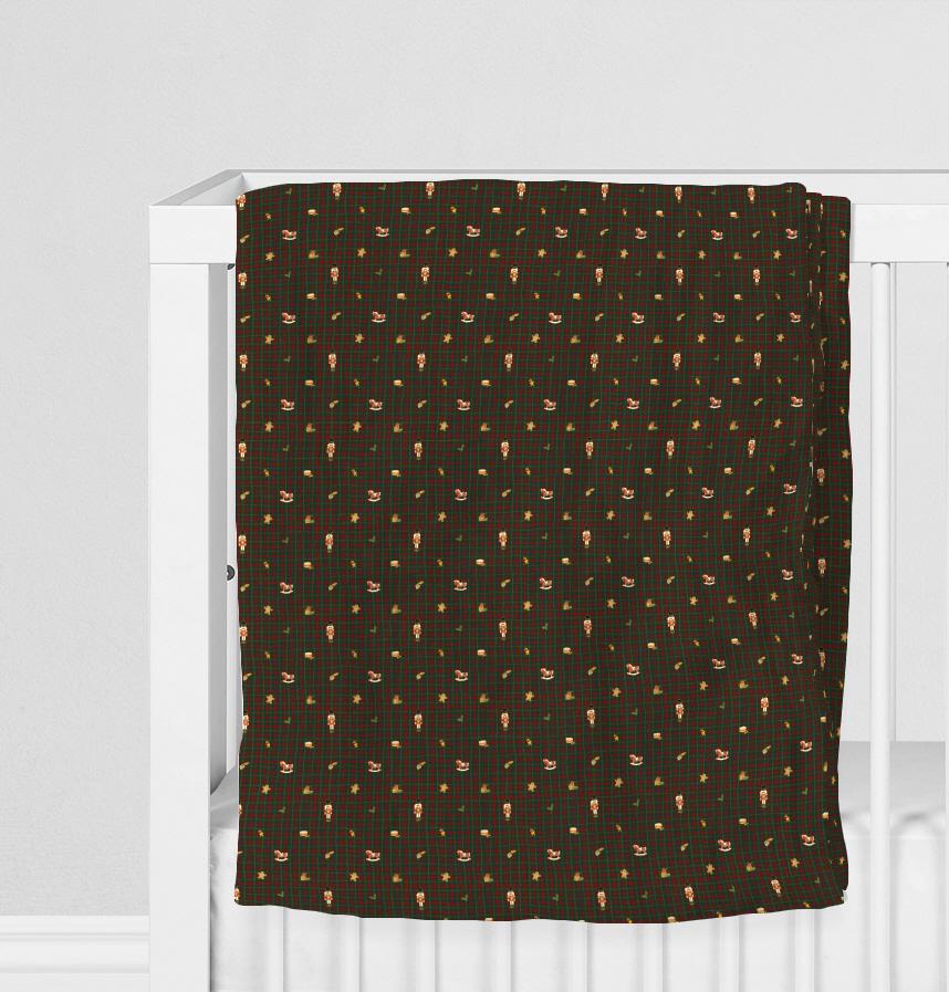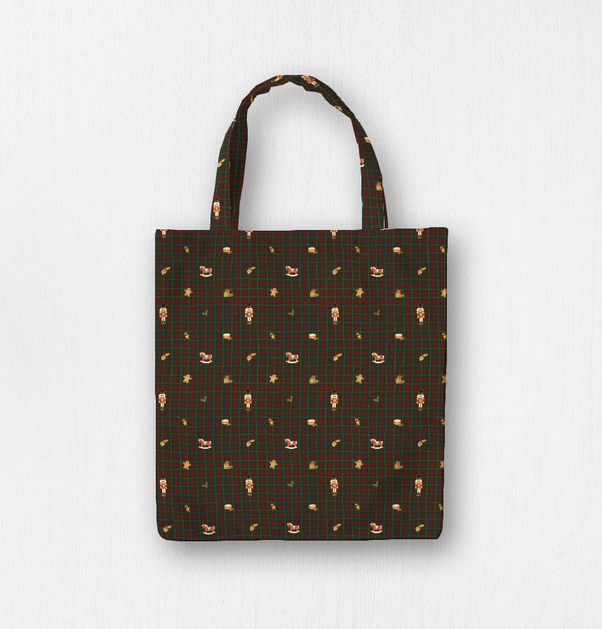 A lovely pattern with cute objects placed on a Christmas-like check background.