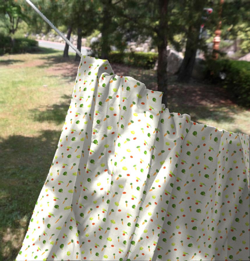 Design name | [49312] Red parakeets and vegetables |