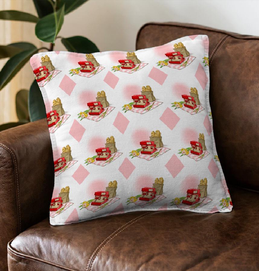 Our picnic props filled with memories: Polaroid camera, bread and flowers
