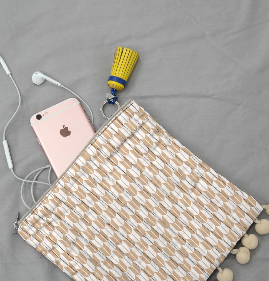 It has a fletching pattern with soft colors.