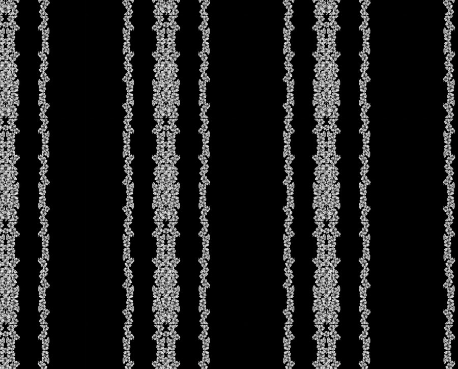 Design infomation | Inked hibiscus floral placed in a centered, continual waterfall design on black background |