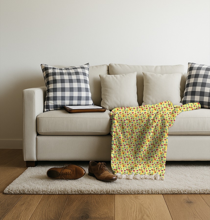 Fabric Base Color - Our fabrics are slightly off-white and are not pure white fabrics treated with fluorescent agents.