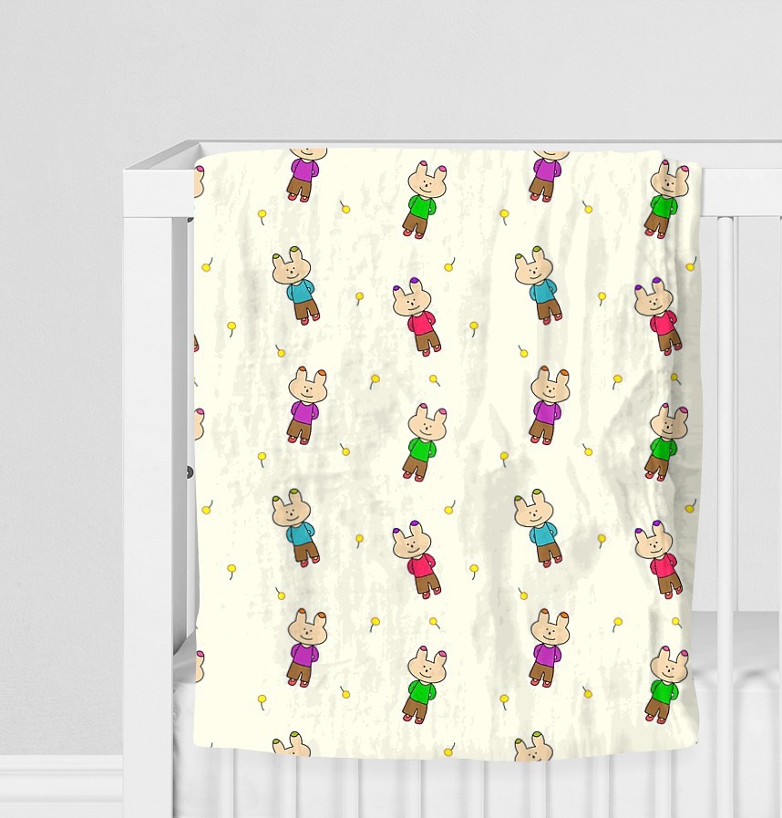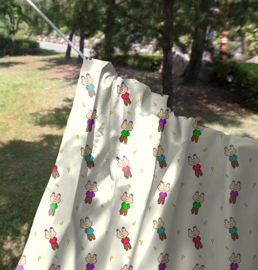 Design infomation An illustration pattern in which rabbit and flower seeds are repeated in the wind