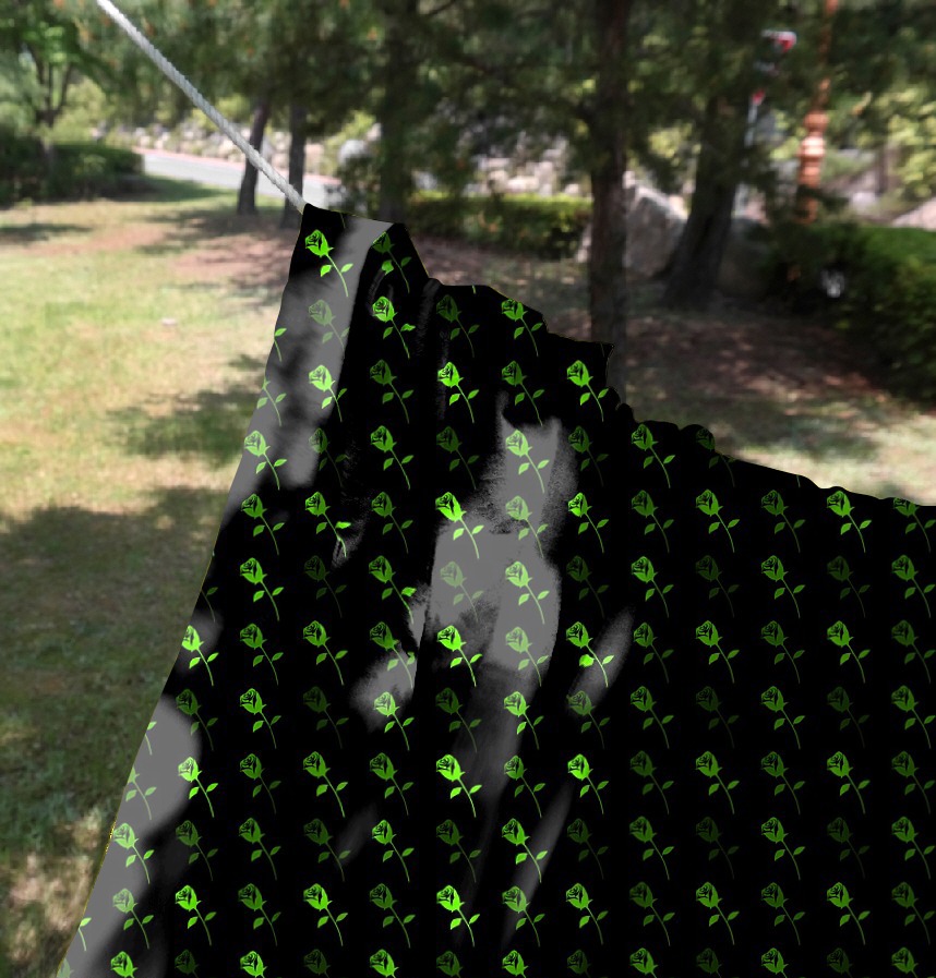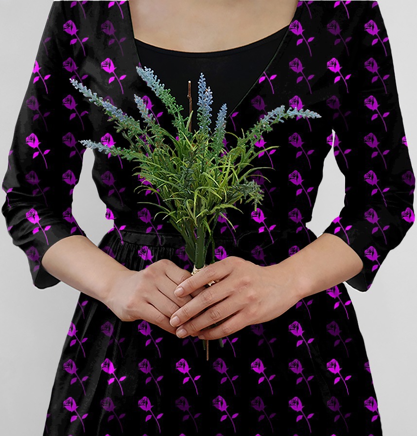 This pattern creates a three-dimensional visual effect by repeatedly arranging roses and imbuing each element with a sense of perspective. While the roses share a consistent structure, their size and angle are adjusted to create a sense of space, with nearby flowers appearing larger and distant ones smaller. The monochrome background further emphasizes the form and depth of the flowers. The overall composition maintains a grid-like arrangement while also guiding the viewer's gaze.