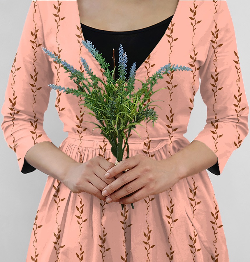 Design infomation It is characterized by a longitudinal vines structure. Each vine is arranged at regular intervals and has a smooth curved shape, creating a rhythmic flow overall. The leaves arranged along the vines are repeated at regular intervals, adding vitality to the pattern. Some vines are spirally curled at the end, providing a visual point and adding a playful element to the overall design.