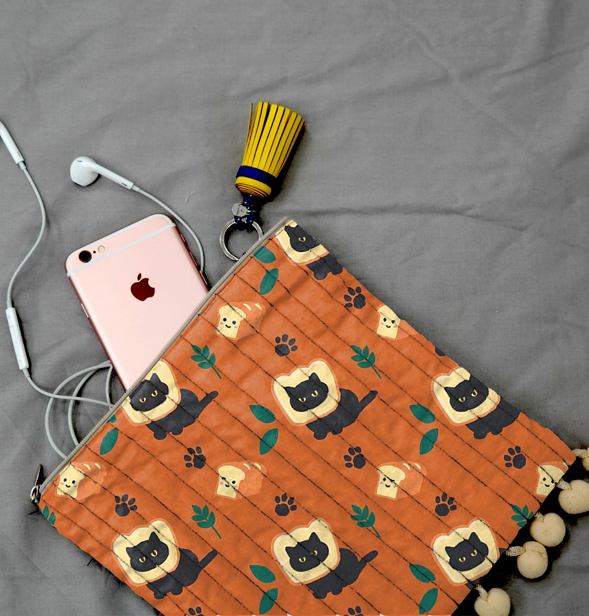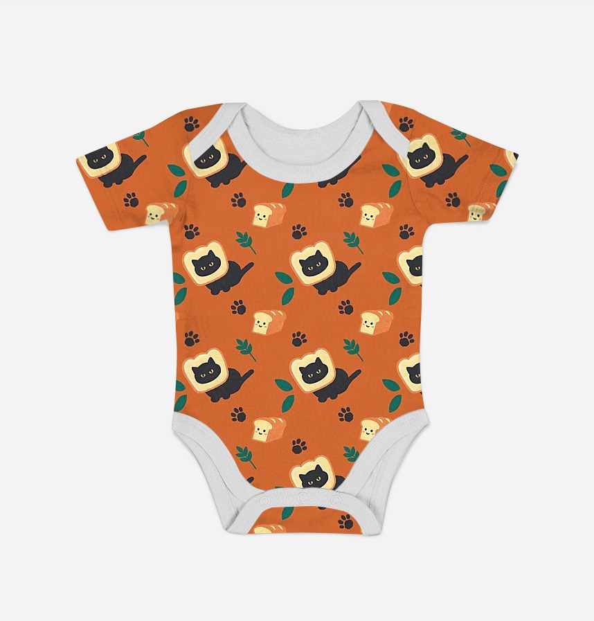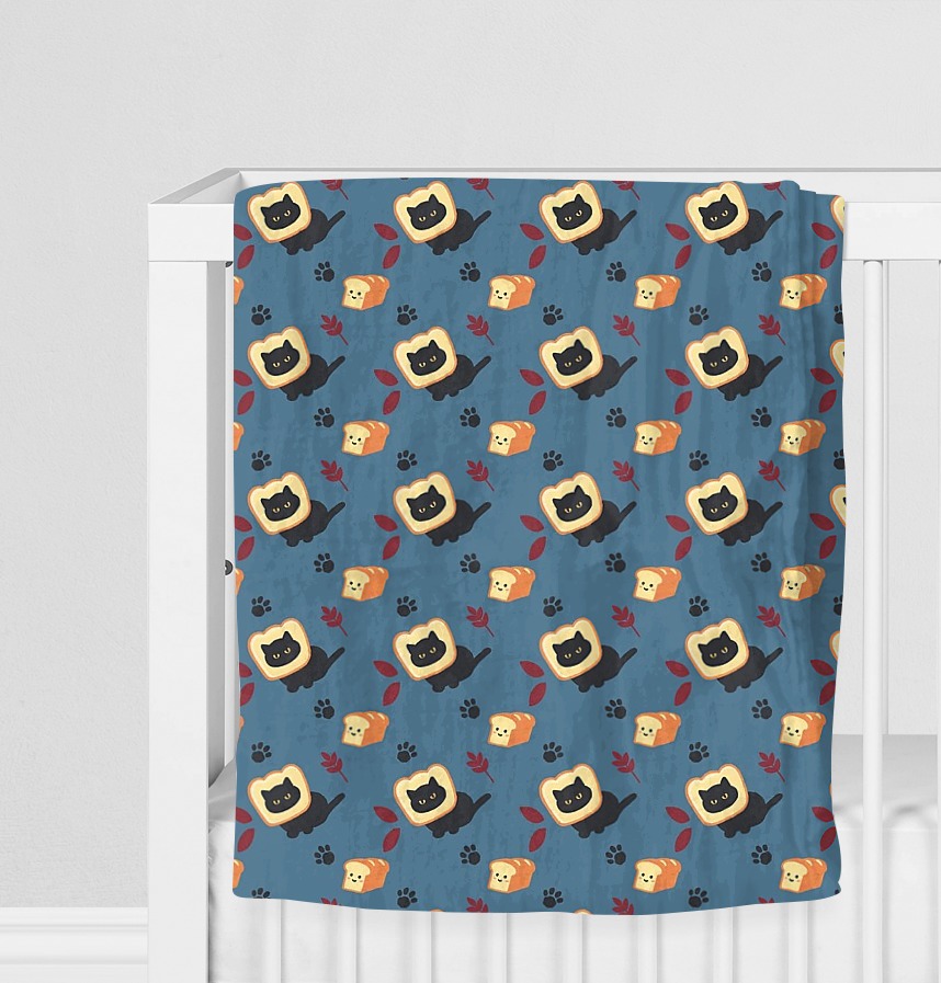 It is an autumn-like pattern with cute bread and black cat hand drawings.