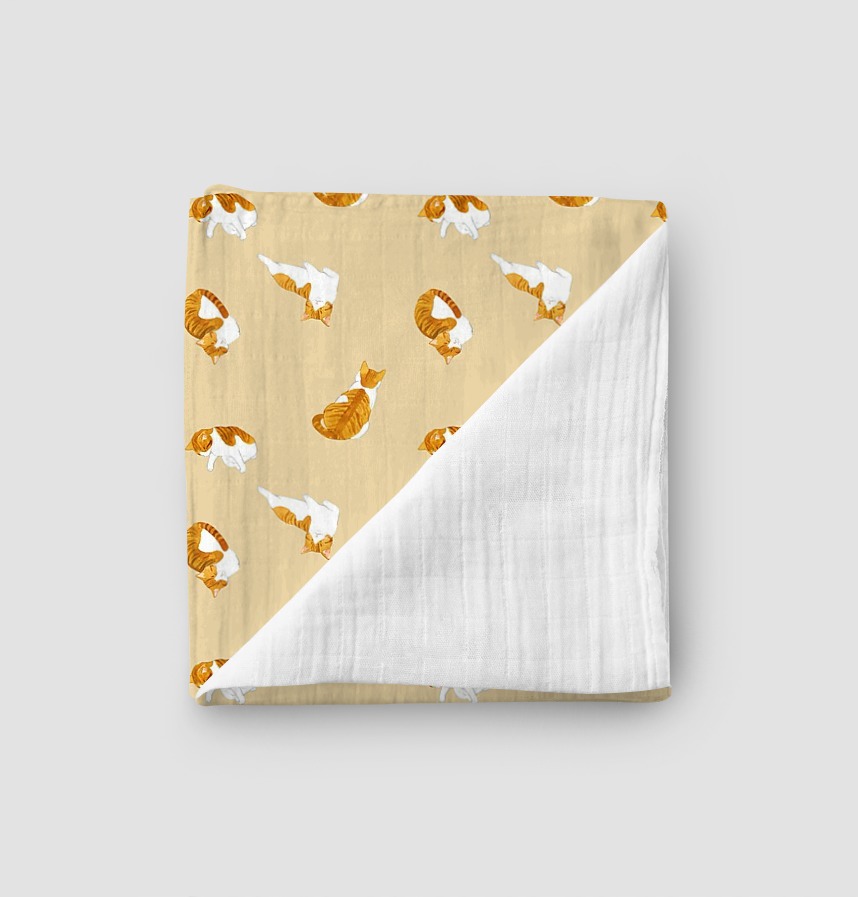 Design infomation It is a pattern of loose and cute brown and white cats drawn in transparent watercolors.